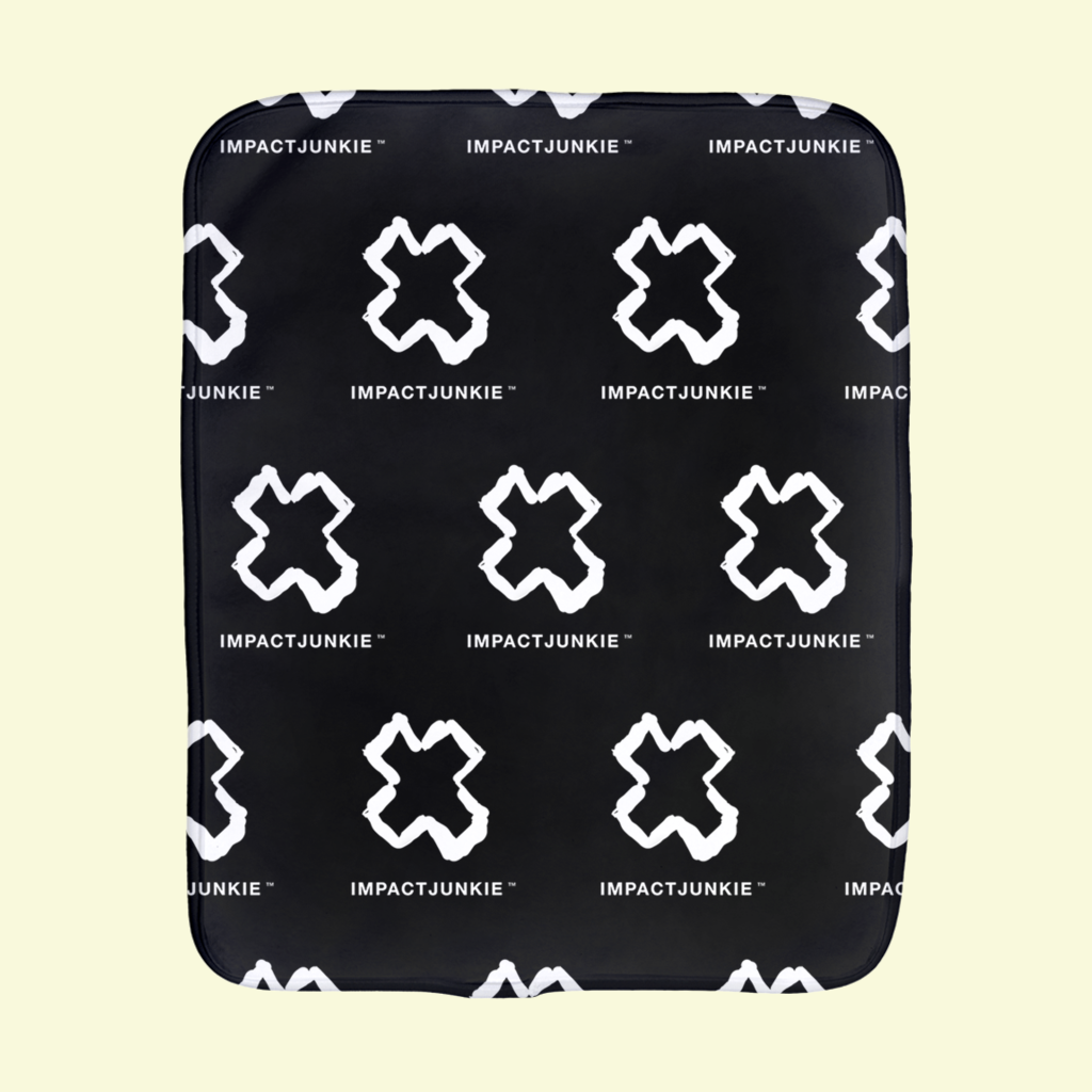 Beautiful black front and back for the IMPACTJUNKIE baby ready to change the world. 12 x 15 inches