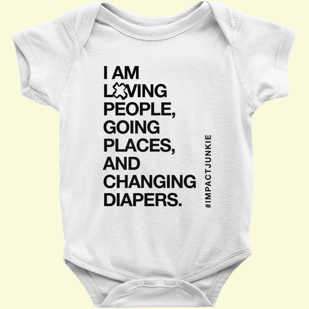 I am loving people, going places, and changing diapers. #IMPACTJUNKIE - Rock your IJ baby / infant style with this onesie.