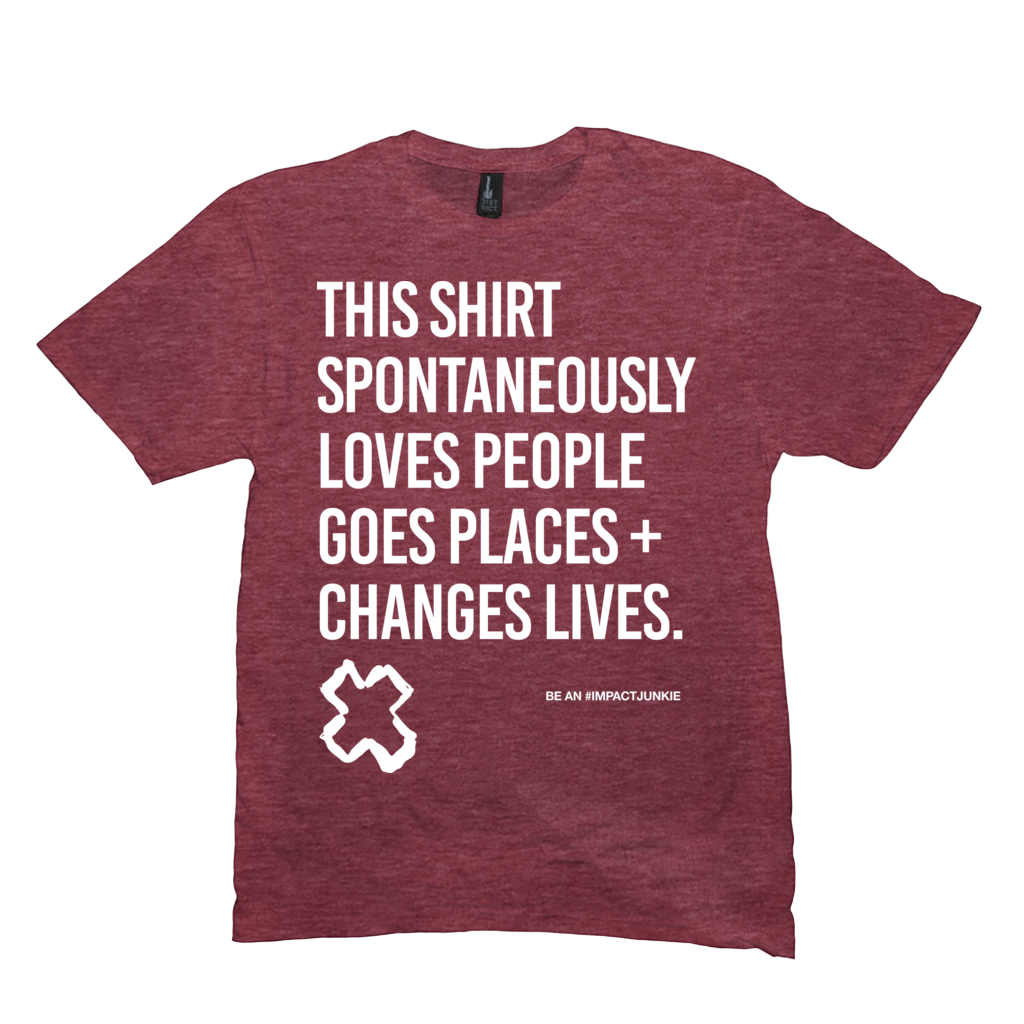 This Shirt Spontaneously Loves, Goes, Changes Lives. Red Shirt